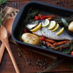 Vous rêvez de déguster un poisson parfaitement cuit ? Pour éviter que le poisson ne se dessèche, privilégiez une cuisson liquide. Placez simplement les filets dans la rôtissoire. Ajouter des légumes (chili, oignon, champignons, etc.), un peu de bouillon de poulet, du vin blanc et du jus de citron ou autre liquide juste assez pour recouvrir les filets. Assaisonner les poivrons, couvrir de papier d’aluminium et le tour est joué. Cuire au four à 350 ˚F (180 ˚C) environ 20 minutes, jusqu’à ce que la viande se détache facilement.