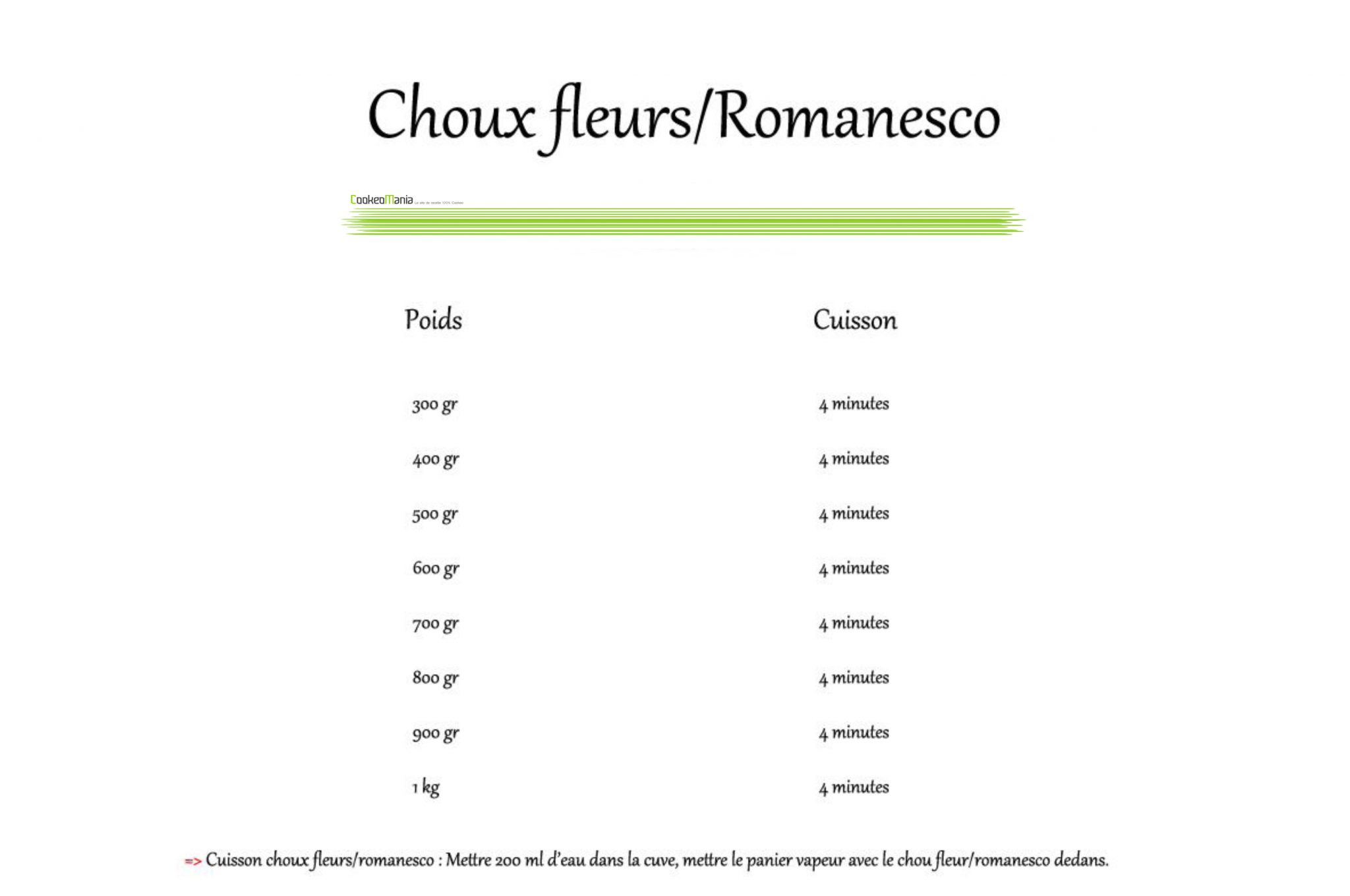 Temps de cuisson chou romanesco à la vapeur