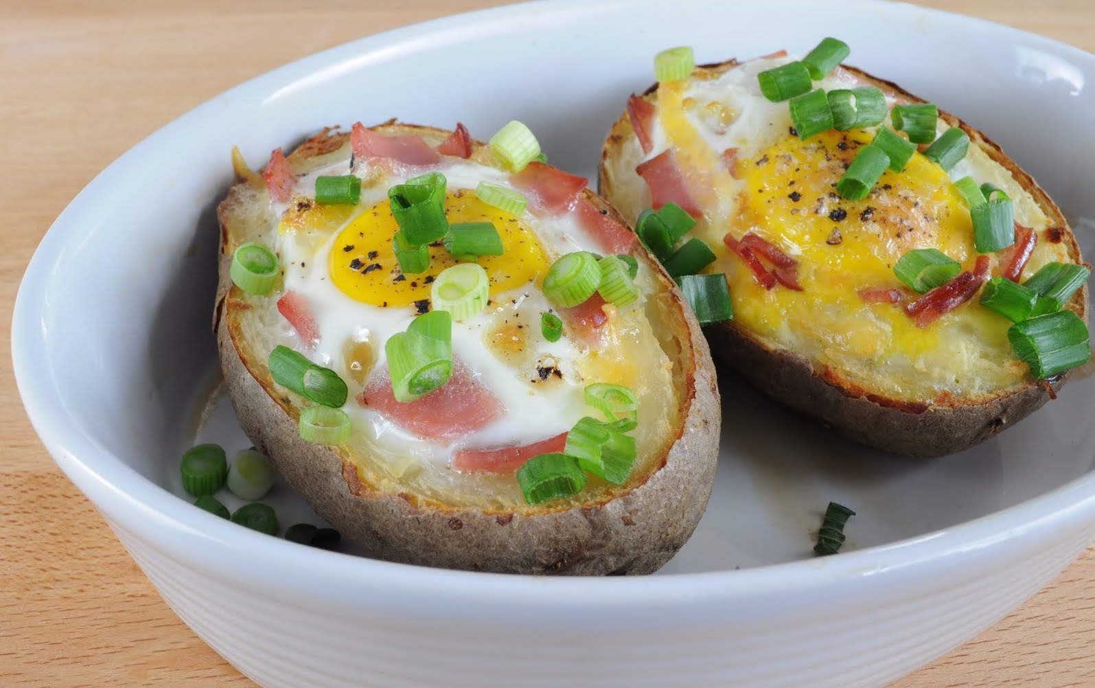 Nettoyez les pommes de terre et piquez-les avec une fourchette pour éviter qu’elles n’éclatent et pour faciliter la cuisson. Emballez-les individuellement dans du papier d’aluminium. Mettez-les au four pour 40 à 60 minutes. Vérifiez la cuisson avec la pointe d’un couteau qui doit traverser facilement la pomme de terre.