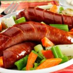 • Rissoles de saucisses d’agneau avec salade grecque de risoni.