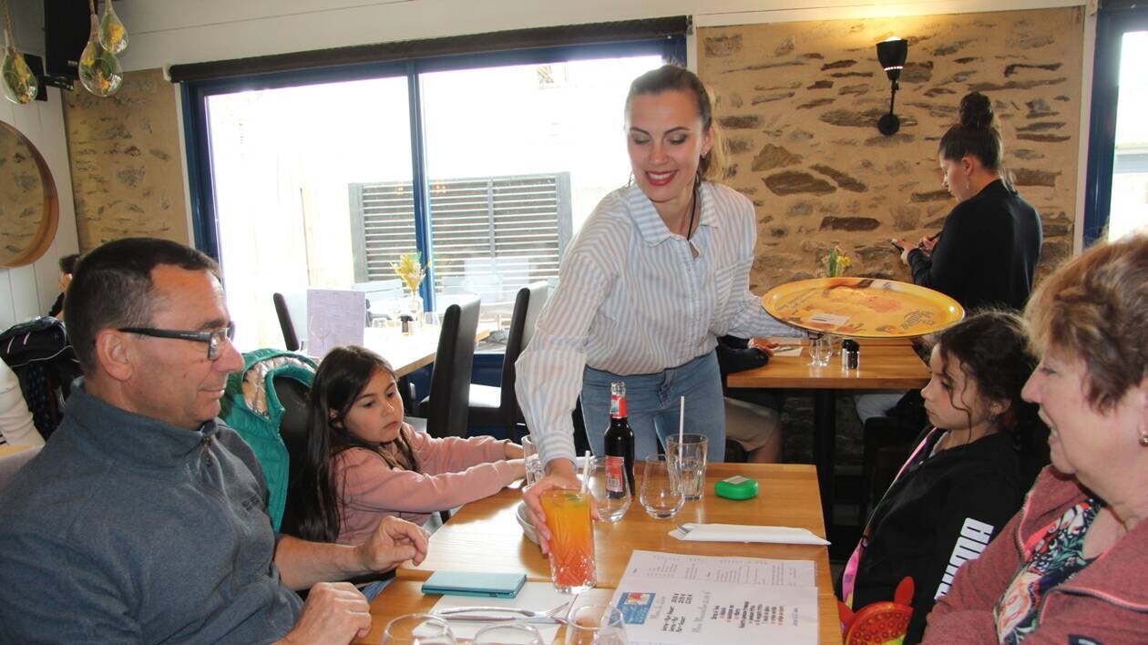 La serveuse supervise le restaurant du Café Pêcheur à Damgan (Morbihan). Elle installe les verres à vin au bar, débarrasse la table, prépare le plat « apéritif tartinable, pain », et se dirige avec confiance vers l’une des nombreuses tables occupées.Avec un grand sourire, cheveux attachés en arrière et plateau à la main, elle annonce et sert « Chardonnay », « Kiere »… Puis repartez à un rythme soutenu et élégant. Avant la guerre en Ukraine, Irina Babchenko, 31 ans, était patineuse professionnelle à Kharkiv et n’avait jamais travaillé dans la restauration.