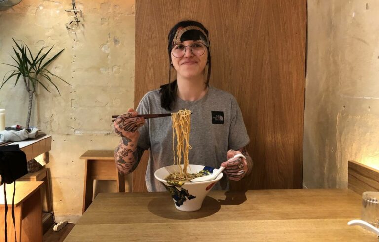Au Japon en tout cas, la spirale Naruto a été mise en veilleuse car au Ramen Bar, un excellent restaurant parisien spécialisé dans les soupes de nouilles. C’est intentionnel. « Naruto est beau, mais ça n’ajoute pas beaucoup de saveur », a tout de suite déclaré la cheffe Charlotte Payne, comme pour mieux manipuler notre pauvre Naruto. Cela n’a pas empêché la trentenaire de sortir les nouilles de son bol et de les engloutir « slurp » comme le veut la coutume japonaise. « J’admets que ce n’est pas très sexy, » rit Charlotte.