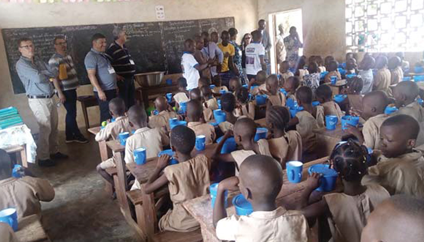 A l’école élémentaire publique de Ko-Anagodo dans la commune d’Ifangni, les participants du Forum mondial sur la nutrition de l’enfant ont été attirés par le fonctionnement de la cantine scolaire. Des épiceries aux cafétérias, en passant par les cuisines et les comptoirs nutritionnels, il s’agit de servir des repas chauds et sains aux écoliers. Dans son allocution, le directeur de l’école Gbemenou Bernard a exprimé sa gratitude au gouvernement et au Programme alimentaire mondial (PAM) pour avoir fourni la cantine scolaire. Tout ce qui pourrait augmenter de manière significative les effectifs scolaires, a-t-il déclaré. « Les absences sont rares, et les performances sont devenues plus satisfaisantes au fil des années », a-t-il dit, avant de préciser qu’en plus de la nourriture, les écoles ont bénéficié d’un paquet d’activités nutritionnelles et d’hygiène. Le maire de la ville d’Ifangni a témoigné que, grâce à la cantine scolaire, la scolarisation des enfants est devenue effective. Il a également salué les efforts du gouvernement et des partenaires techniques et financiers pour mettre fin à la malnutrition infantile. Un membre de la délégation, Ayukegba Evelyne du ministère de l’Éducation de base du Cameroun, s’est dite séduite par le fonctionnement de la cantine et les mécanismes mis en place pour assurer sa pérennité. Elle s’est mise en quatre pour demander un plus grand engagement communautaire afin de promouvoir la durabilité du programme et d’en maximiser l’impact. « Rassembler nos forces pour la résilience et la durabilité des programmes mondiaux d’alimentation scolaire » était le thème du 23e Forum mondial sur la nutrition infantile à Cotonou. Un forum a été co-organisé par l’ONG Global Child Nutrition Forum (CGNF), le gouvernement du Bénin avec l’appui du Programme alimentaire mondial (PAM) et de la Catholic Relief Society (CRS).