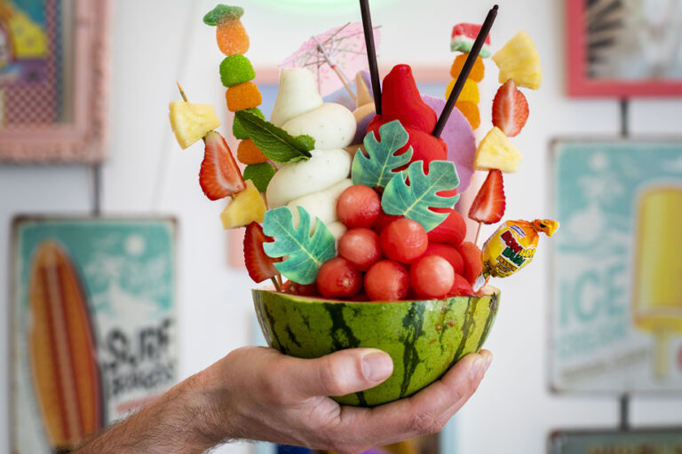 Commandez un bol à mélanger chez Blueboy, un glacier convivial sur l’avenue du Mont-Royal, comme un feu d’artifice. A base d’ananas, de melon ou de pastèque, on greffe deux sorbets et une glace (tous deux faits maison) et plein de décorations comme des brochettes de fruits et diverses douceurs, fleurs comestibles (en saison) et autres surprises. Les ingrédients à base de pastèque sont également inspirés du pays d’origine des propriétaires d’El Salvador.