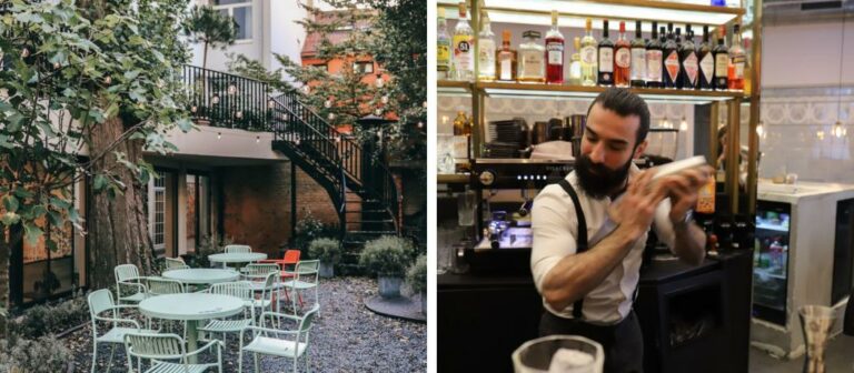 Le restaurant est un véritable petit paradis de tranquillité, derrière lequel se cache l’un des plus beaux jardins de Bruxelles. Joliment décoré avec des guirlandes claires et des meubles aux couleurs pastel, et de l’art partout, le patio est un véritable espace de vie où il fait beau vivre. Sans oublier son brasero qui nous réchauffe dès que le soleil se couche. Le bar extérieur rend également le lieu particulièrement convivial, tout comme l’intérieur du lieu.